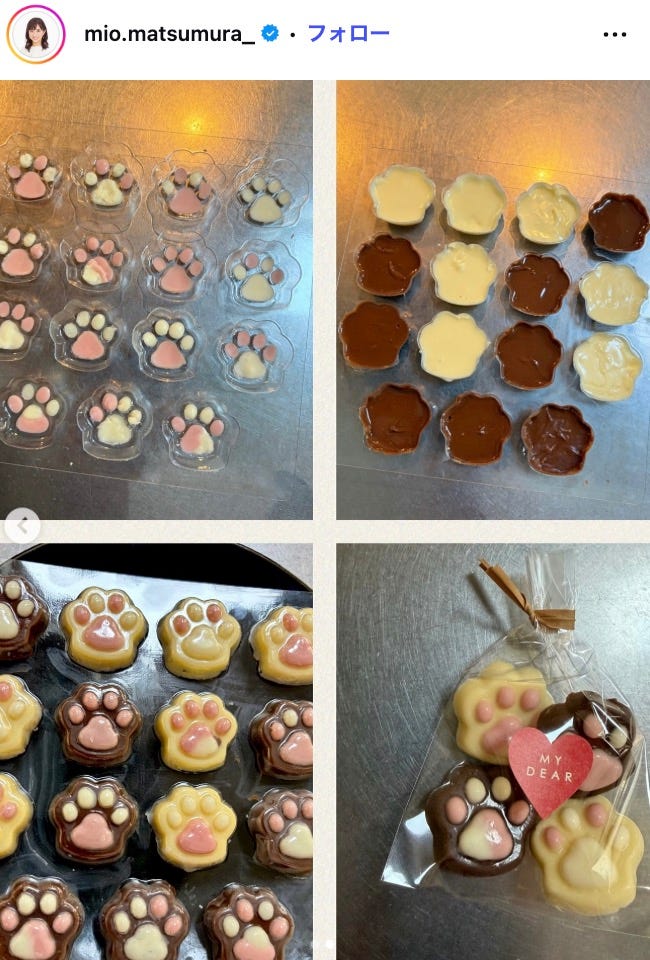フジテレビの松村未央アナウンサーが2月14日、自身のInstagramを更新。娘が手作りしたバレンタ...