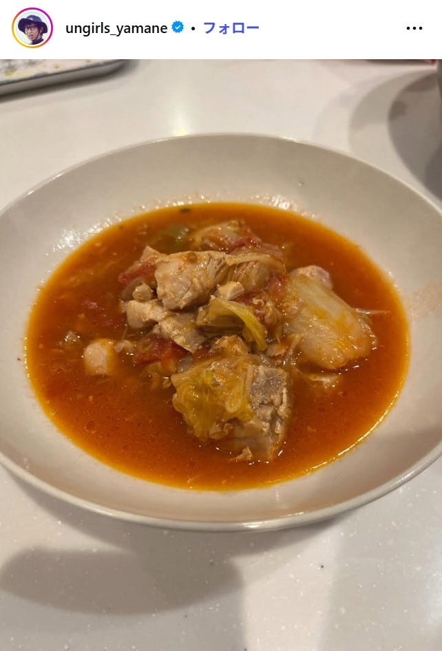 お笑いコンビ・アンガールズの山根良顕が2月14日、自身のInstagramを更新。自身が作った手料理...