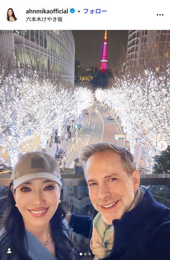 アンミカ、イケメン夫と六本木降臨 夫婦ショットに「お揃いコーデ素敵」「綺麗な夜景に負けてない」の声