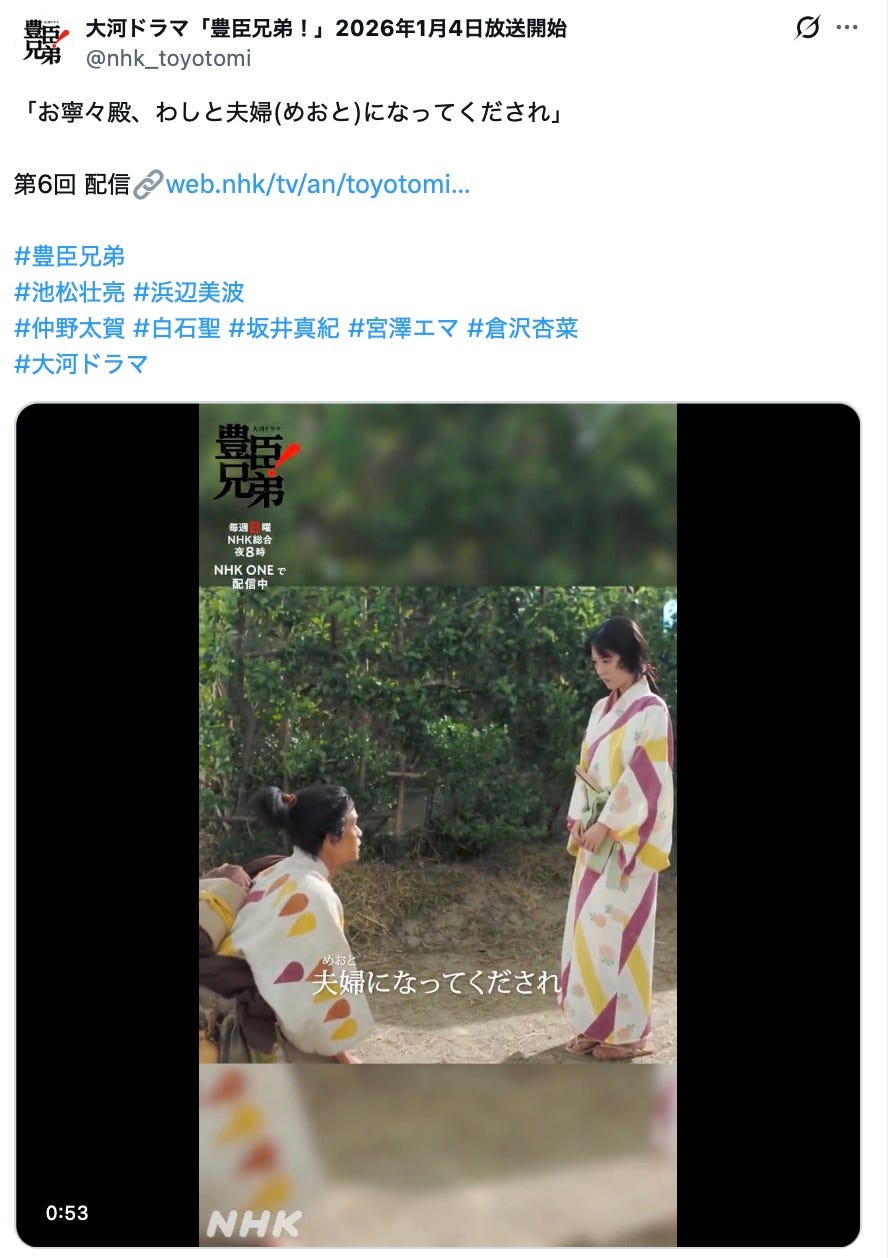 「豊臣兄弟!」公式Xより「豊臣兄弟!」第6話(C)NHK