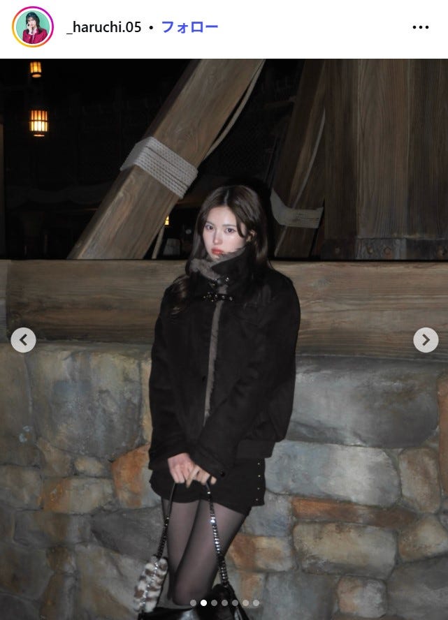 「今日好き」村谷はるな、黒タイツで美脚透ける ディズニコーデに反響「大人っぽくて綺麗」「センター分け似合ってる」