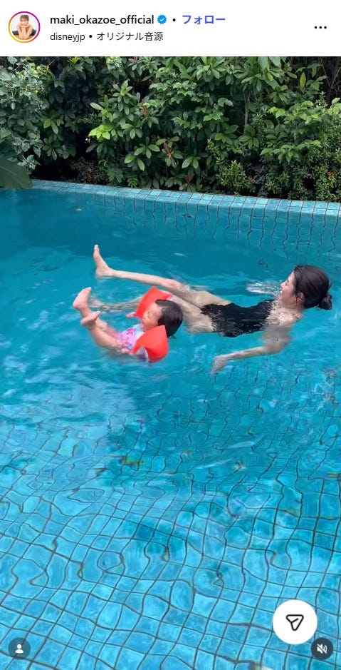 岡副麻希、水着姿披露 宮古島でプール満喫「人魚のよう」「ママのレッスン羨ましい」の声