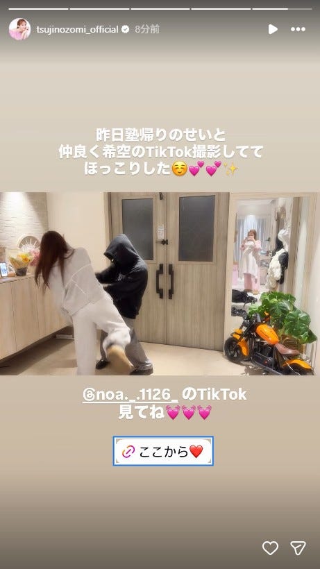 辻希美、広々自宅玄関で踊る長女・希空(のあ)&長男・青空(せいあ)くんの姿公開「ドアが大きすぎる」「辻ちゃんも写り込んでるの可愛い」の声