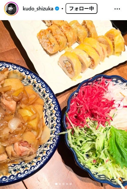 工藤静香、鶏むね肉の野菜巻き・抹茶チーズケーキなど手料理多数披露「アイデア凄い」「手が込んでる」と反響