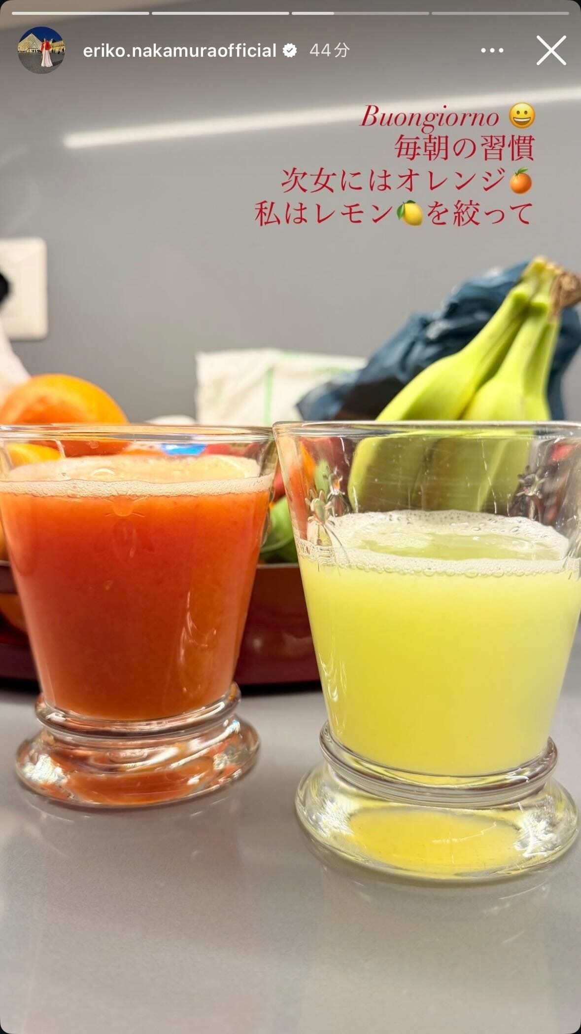 フリーアナウンサーの中村江里子が2月18日、自身のInstagramストーリーズを更新。自家製ジュー...
