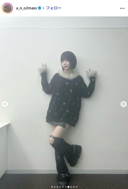 アーティストのあのが2月17日、自身のInstagramを更新。オーバーサイズのトップスとミニボトム...