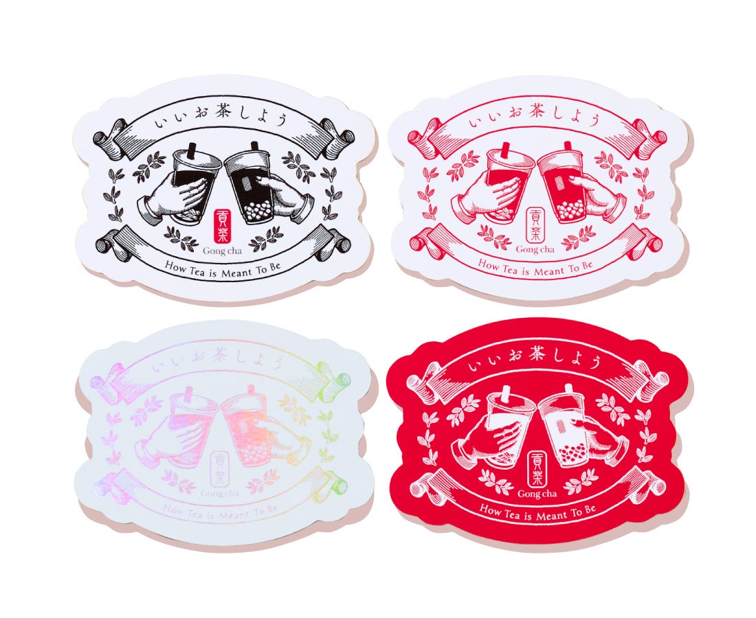 「いちご杏仁」1点購入につき1枚配布「いいお茶しよう」ステッカー(提供写真)