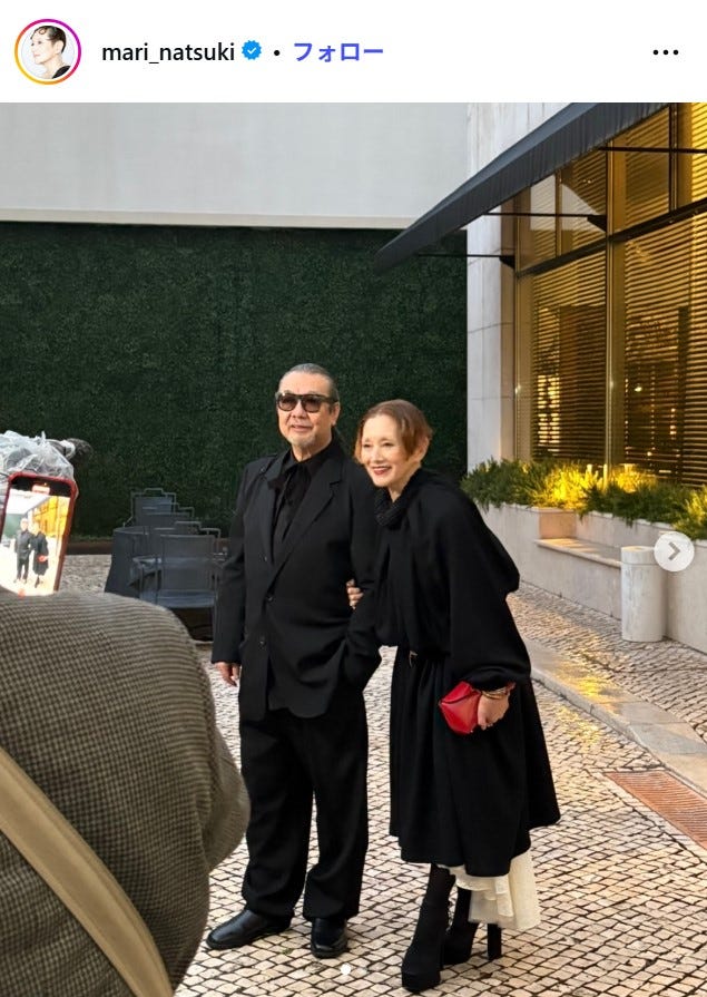 夏木マリ、夫との腕組み2ショット披露「オシャレ夫婦」「オーラ漂ってる」と注目集まる