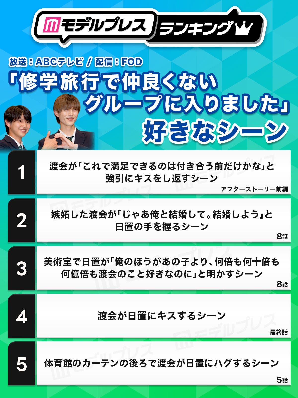 読者が選ぶ「修学旅行で仲良くないグループに入りました」好きなシーントップ10を発表【モデルプレスランキング】