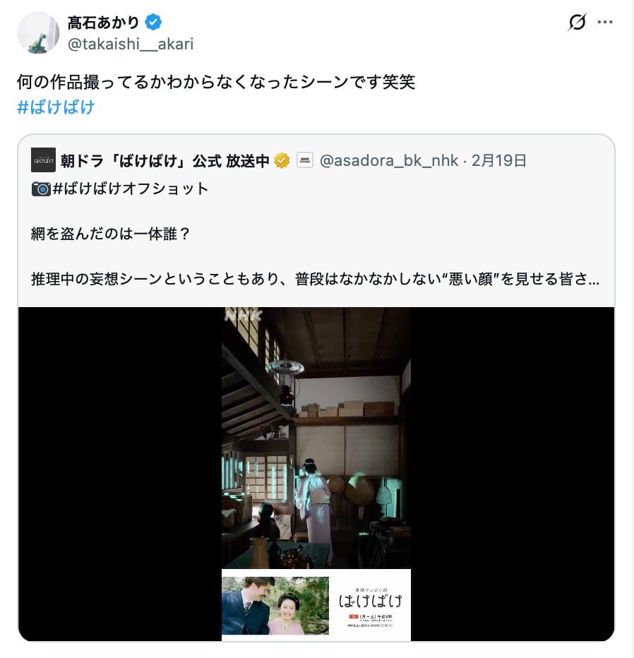 朝ドラ「ばけばけ」高石あかりの「朝ドラ史上最も悪いヒロイン」シーン裏側公開 本人も反応「何の作品撮ってるかわからなくなった」