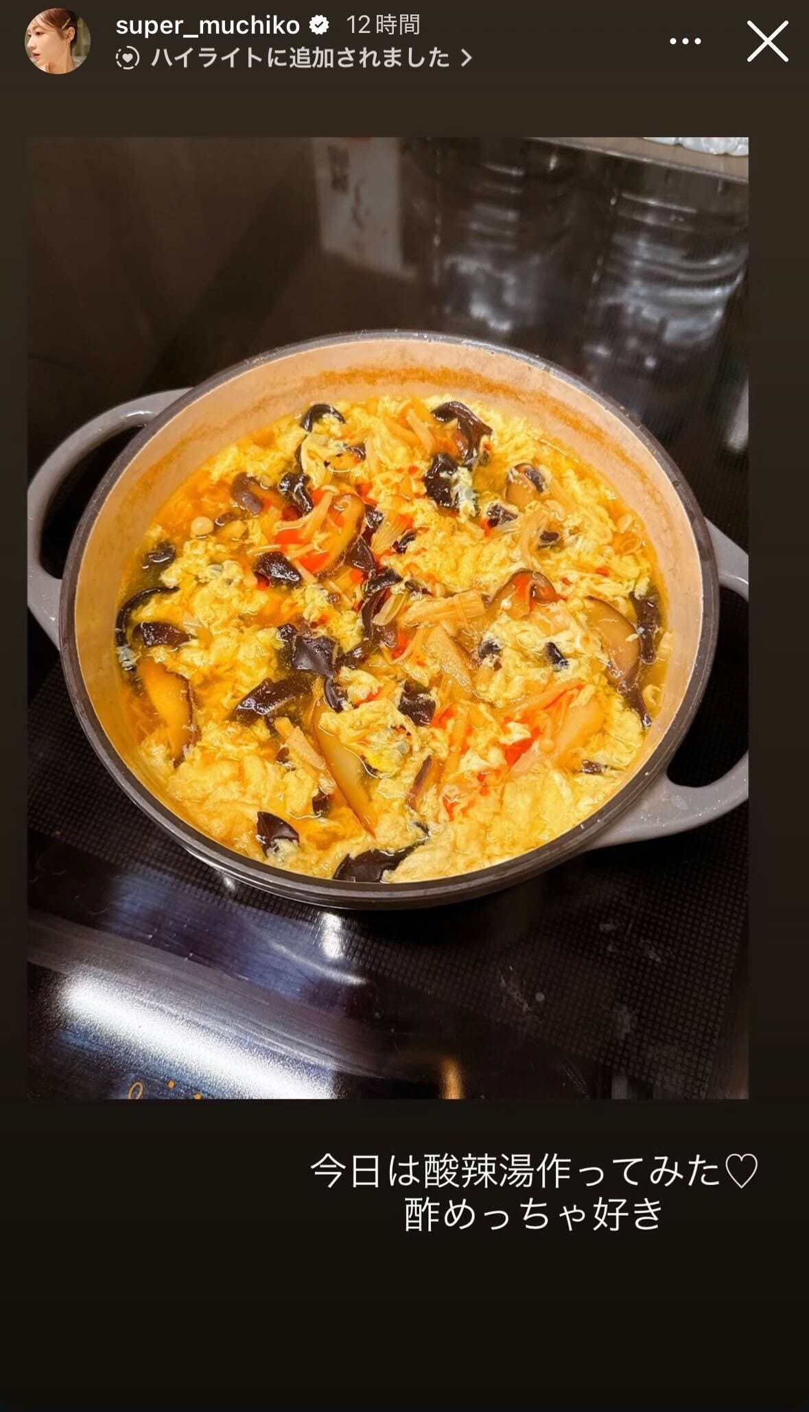 YouTuberのてんちむが2月20日、自身のInstagramストーリーズを更新。手作りの酸辣湯を...
