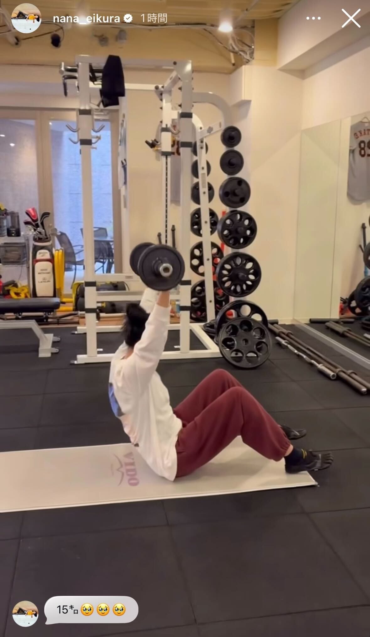 女優の榮倉奈々が2月21日、自身のInstagramストーリーズを更新。15kgのダンベルを持ち上げ...
