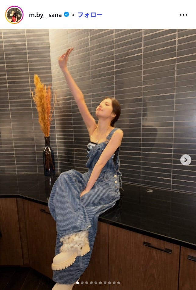 TWICEサナ「年に一度」素肌輝くオーバーオール&ベアトップ姿披露「スタイルが神」「美しさレベチ」の声