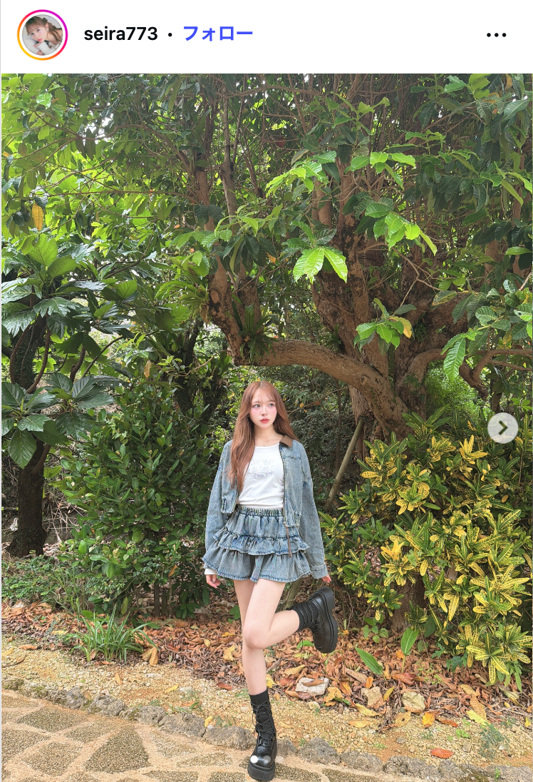 「今日好き」出身美女、ミニスカデニムセットアップコーデ披露「スタイルレベチ」「脚長すぎ」