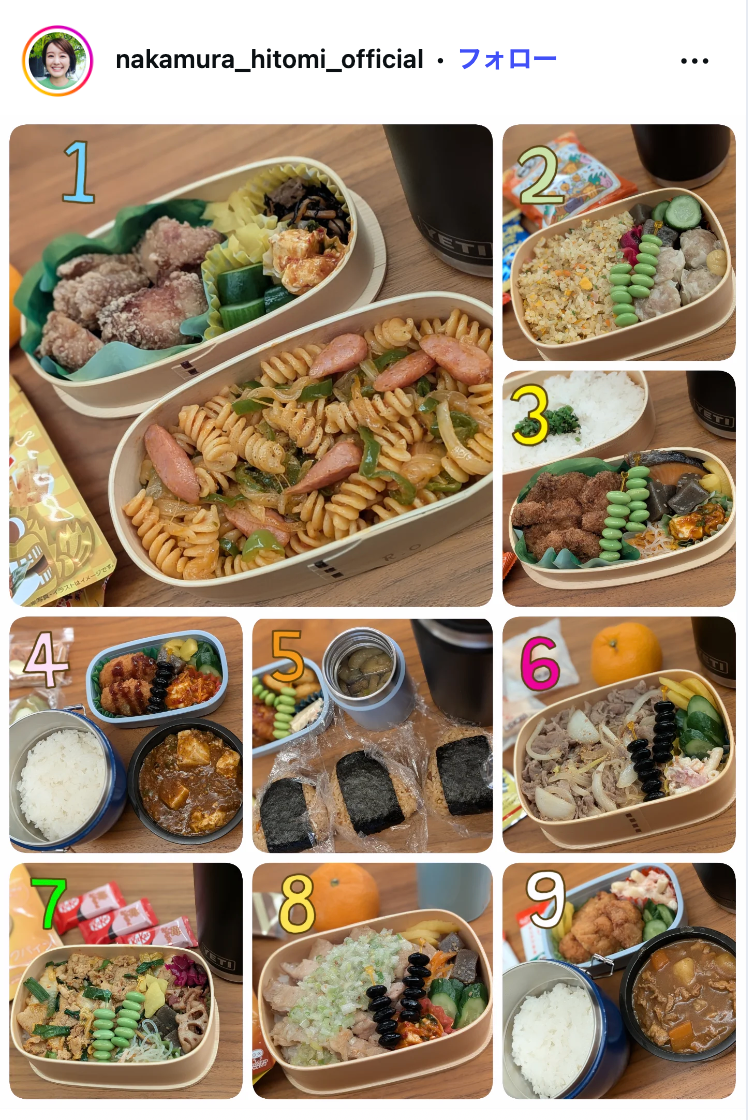 フリーアナウンサーの中村仁美が2月25日、自身のInstagramを更新。9種類の弁当のショットを公...