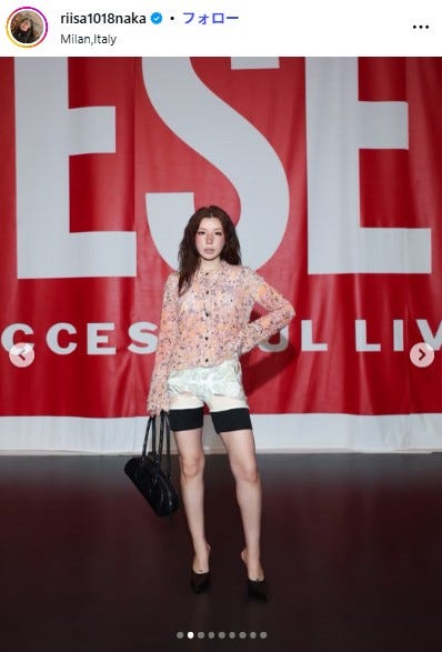女優の仲里依紗が2月26日、自身のInstagramを更新。イタリア・ミラノで開催された「DIESE...