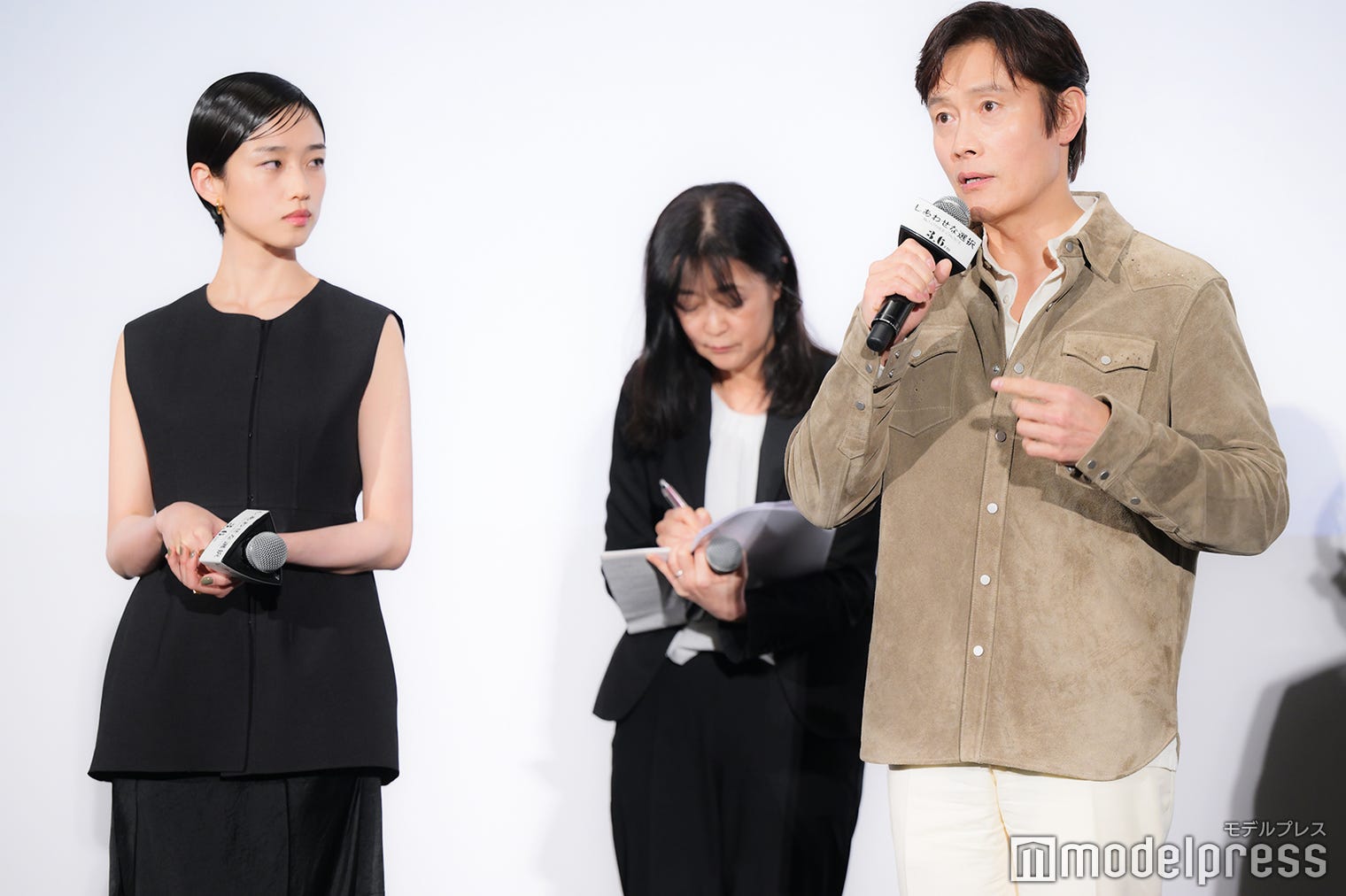 俳優のイ・ビョンホン、女優の河合優実が27日、都内で開催された映画『しあわせな選択』ジャパンプレミア...