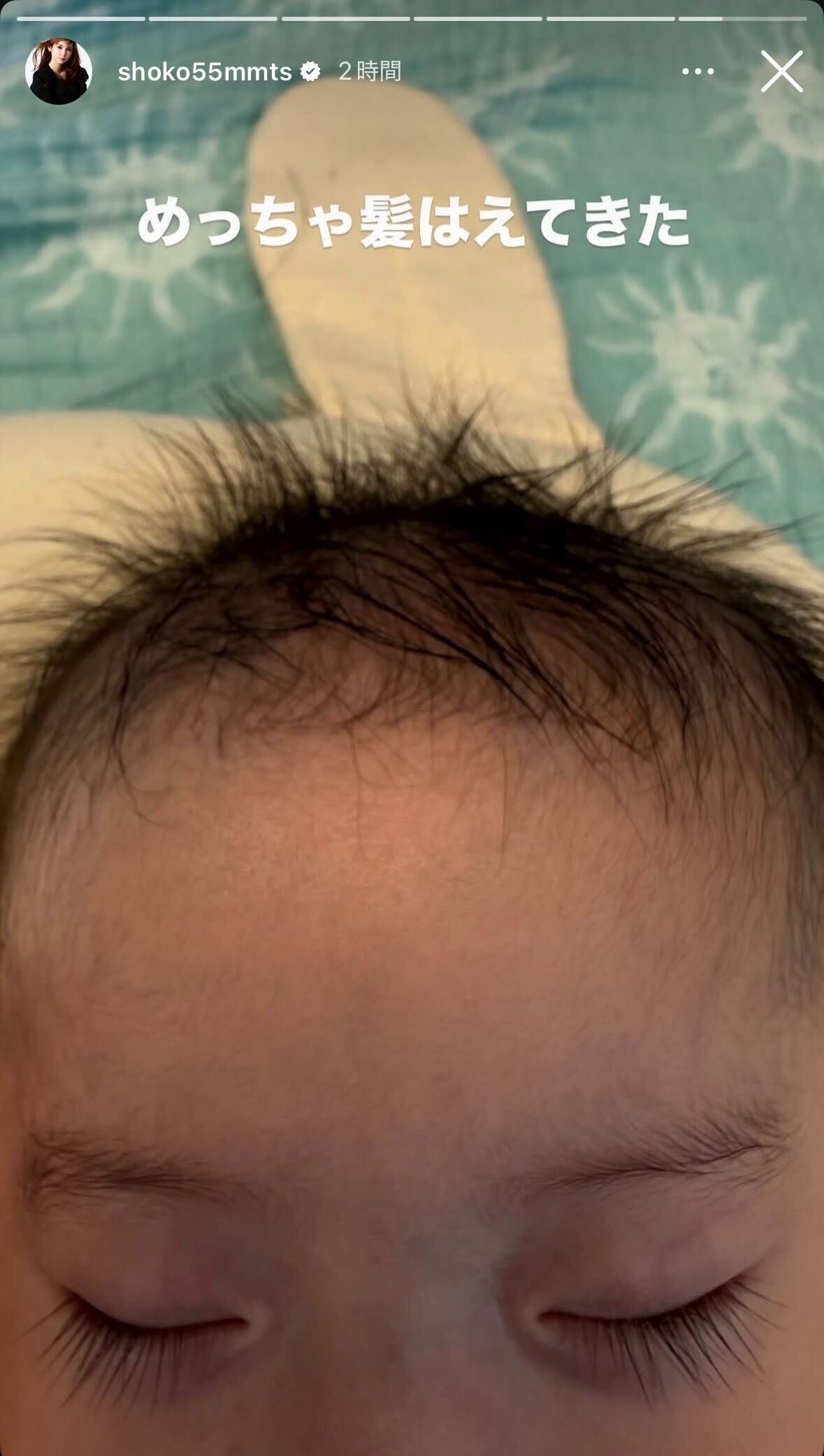 中川翔子「めっちゃ髪はえてきた」息子の寝顔ショットに反響「芸術的なまつ毛の長さ」「赤ちゃんの成長は早い」