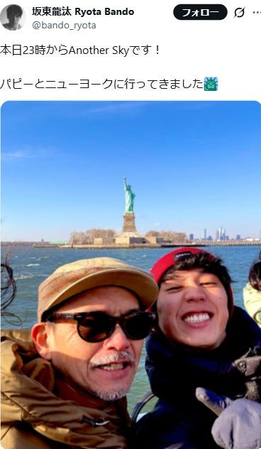 俳優の坂東龍汰が2月28日、自身のX(旧Twitter)を更新。父親との自撮り2ショットを披露し、反...
