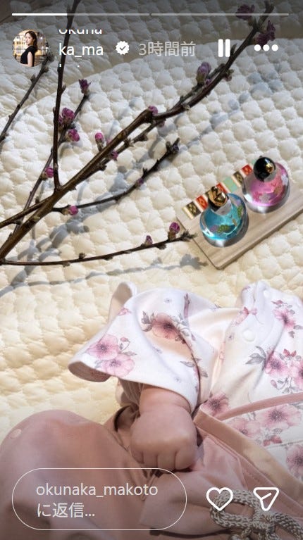 「仮面ライダー」ヒロイン、娘の初節句ショット公開「赤ちゃん用袴可愛い」「桃の花の枝もあって本格的」の声