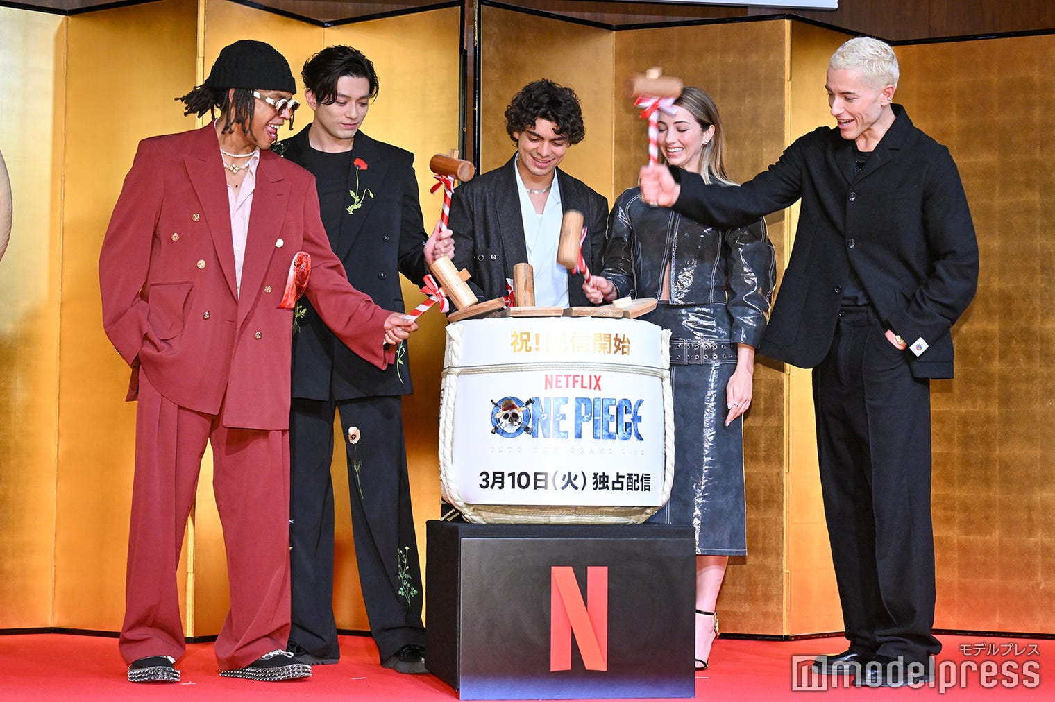 1. 「『ONE PIECE』シーズン2」来日記者会見に出席したジェイコブ・ロメロ、新田真剣佑、イニャキ・ゴドイ、エミリー・ラッド、タズ・スカイラー(C)モデルプレス