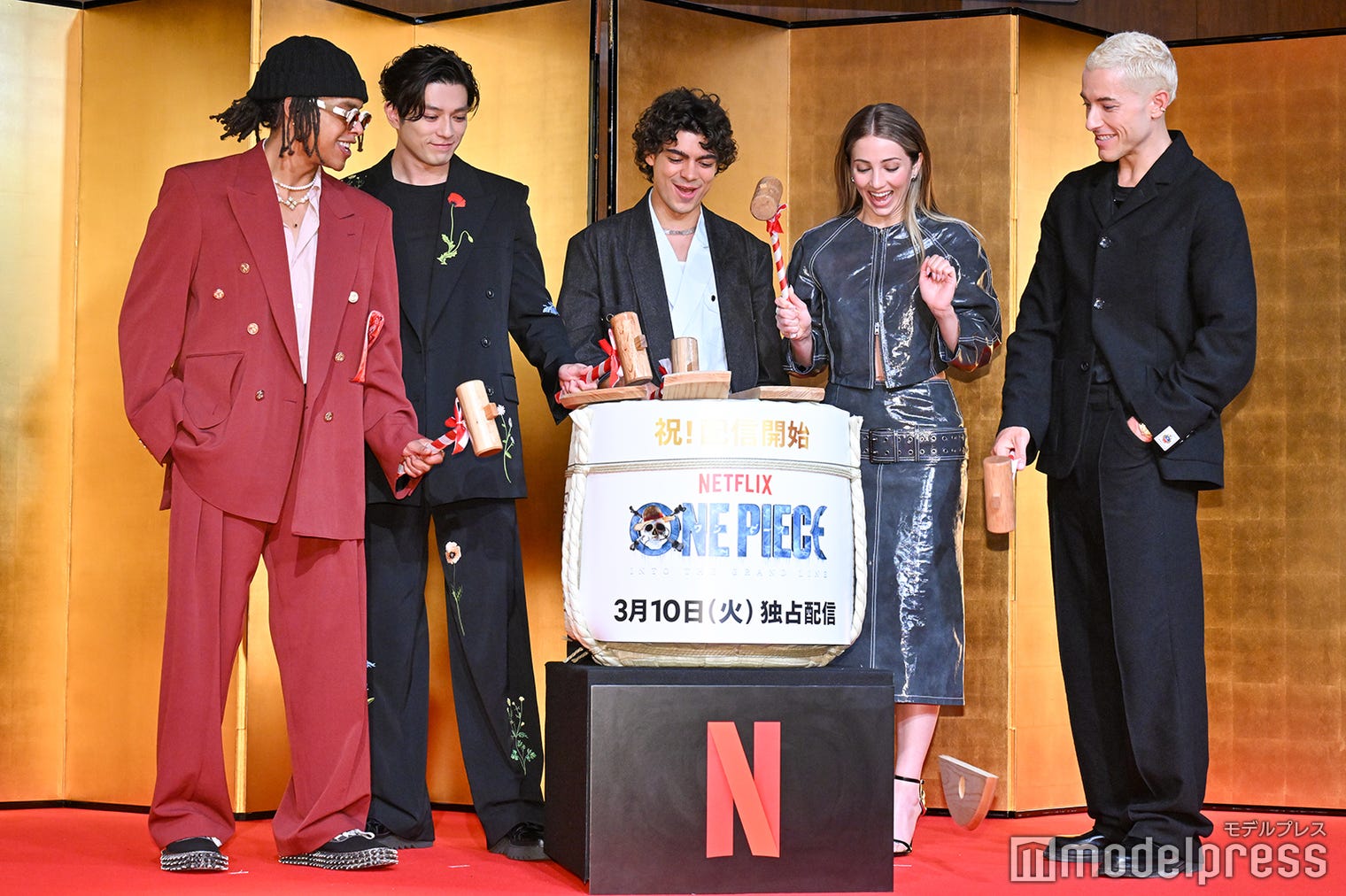 1. 「『ONE PIECE』シーズン2」来日記者会見に出席したジェイコブ・ロメロ、新田真剣佑、イニャキ・ゴドイ、エミリー・ラッド、タズ・スカイラー(C)モデルプレス