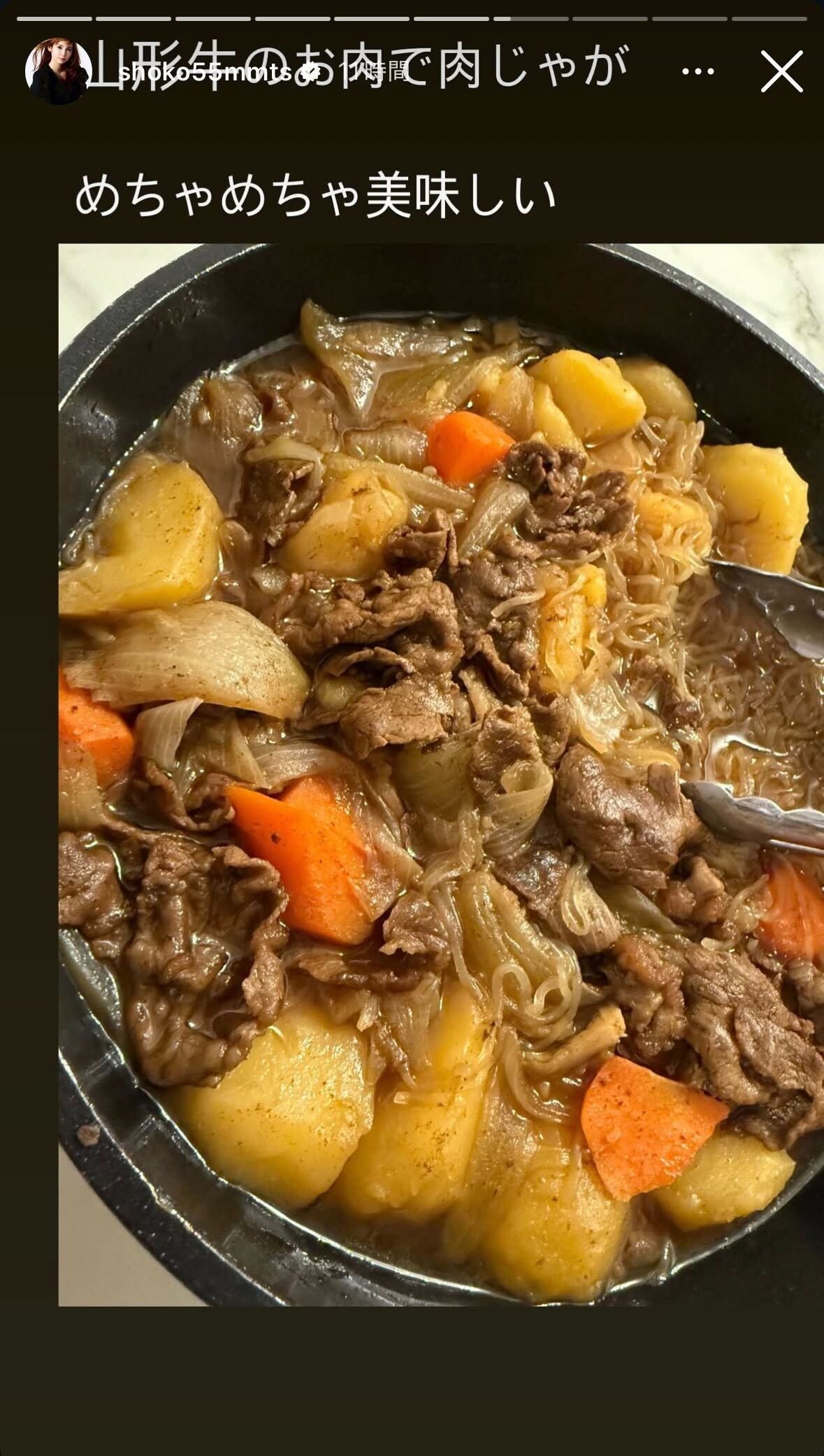 歌手でタレントの中川翔子が3月6日、自身のInstagramストーリーズを更新。山形牛を使用した肉じ...