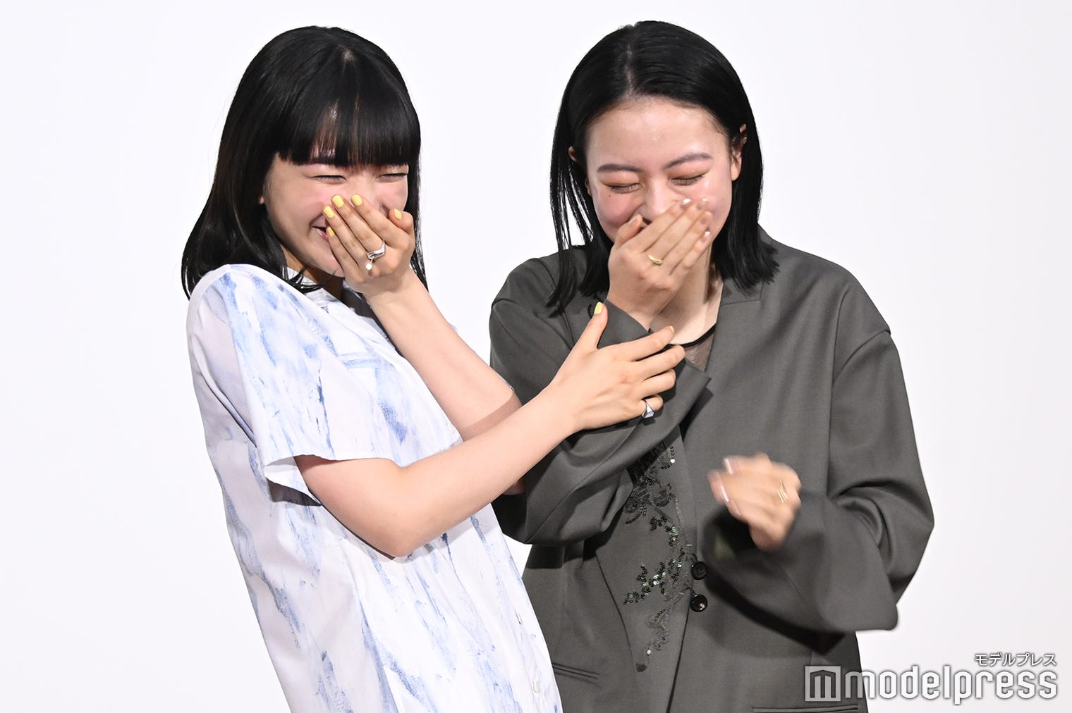 6. 記者にハートポーズを求められ「恥ずかしいです」と笑い合う見上愛、上坂樹里(C)モデルプレス