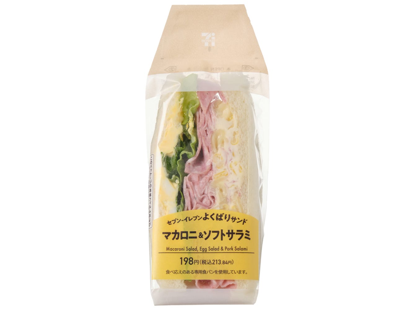 セブン‐イレブンよくばりサンド マカロニ&ソフトサラミ(税込213.84円)(提供写真)