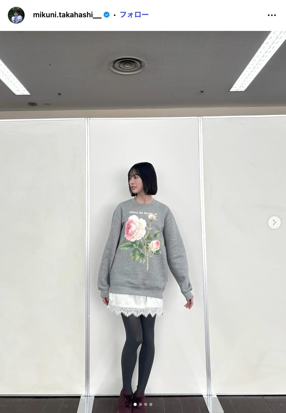日向坂46高橋未来虹、ミニボトムス×タイツ姿で美脚ライン際立つ「完璧なスタイル」「着こなしが神」と反響