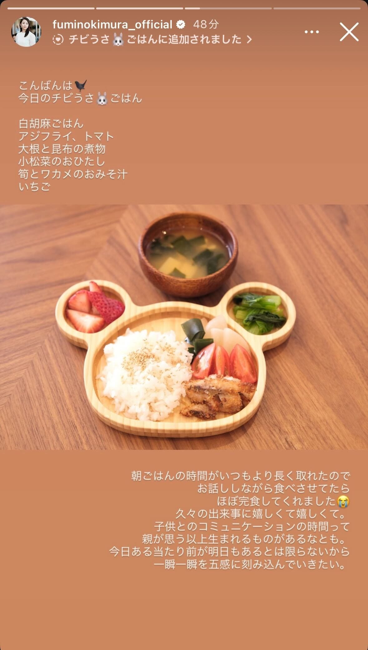 女優の木村文乃が3月11日、自身のInstagramストーリーズを更新。「ほぼ完食」してくれた子ども...