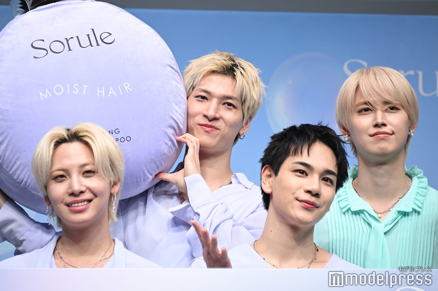 (後列左から時計回りに)金城碧海、白岩瑠姫、豆原一成、川尻蓮(C)モデルプレス