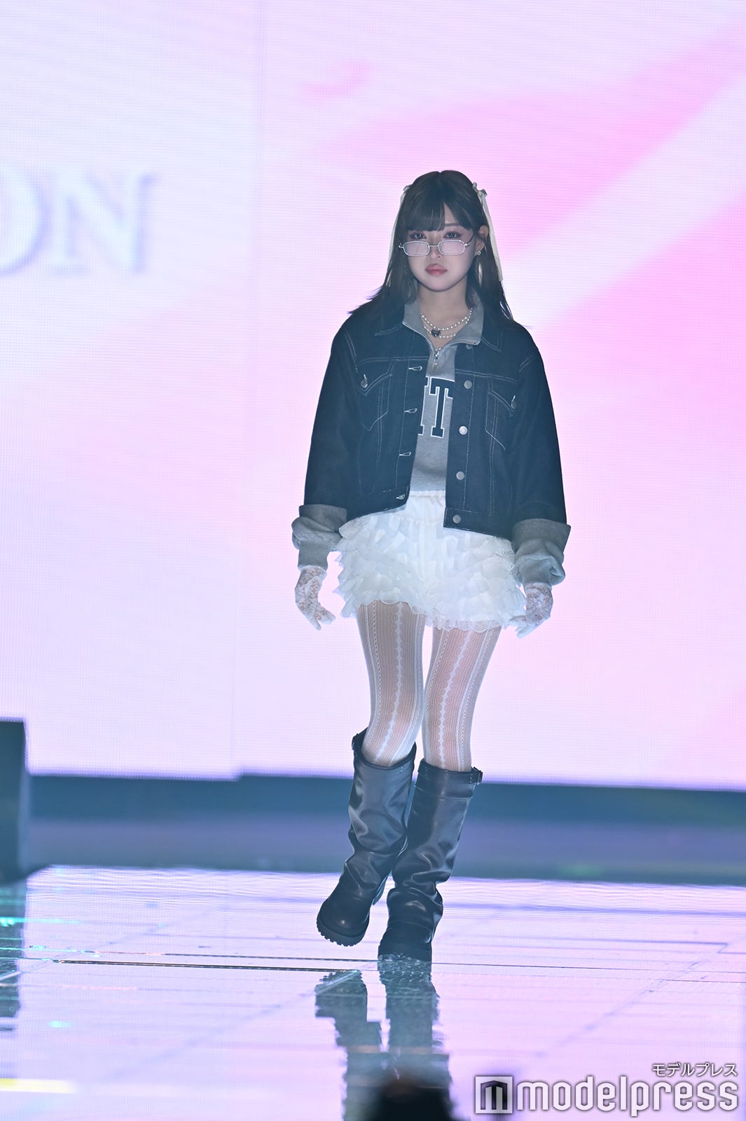 MINAMI、ミニスカ×レースタイツ着こなす メガネ外す姿に視線集中【TGC2026 S/S】