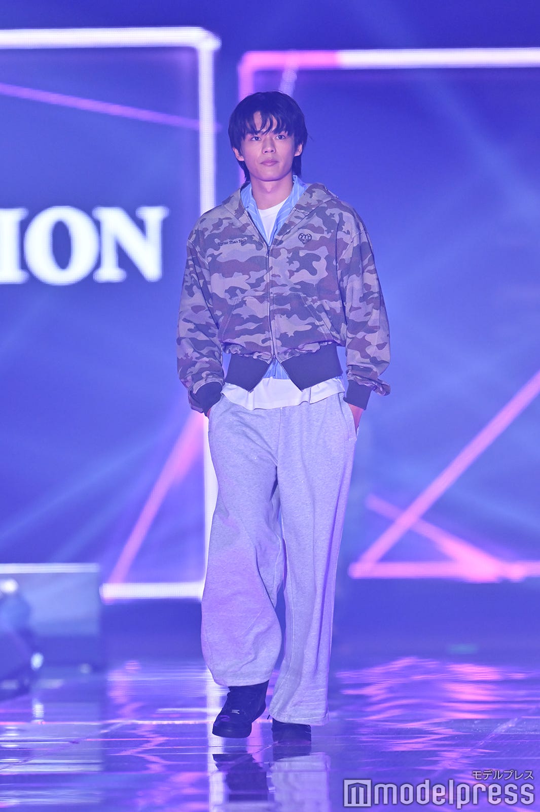 日向亘、迷彩柄パーカー×レイヤードでおしゃれなコーデ「イケメン」「着こなせるのすごい」と反響【TGC2026 S/S】
