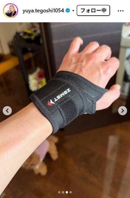 アーティストの手越祐也が16日、自身のInstagramを更新。フットサル中に手首を怪我したことを報...