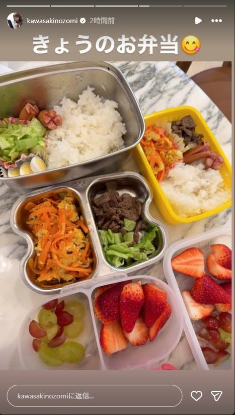 タレントの川崎希が3月18日、自身のInstagramストーリーズを更新。2人分のお弁当を公開し、話...