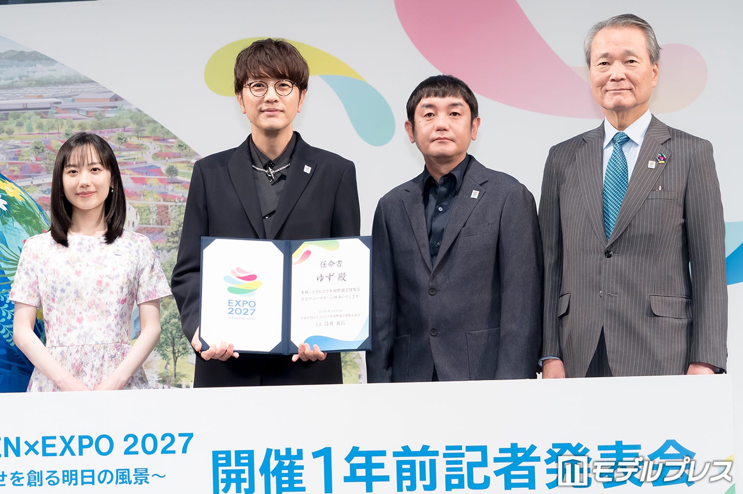 アーティストのゆずと女優の芦田愛菜が3月19日、都内で開催された「GREEN×EXPO 2027 開...