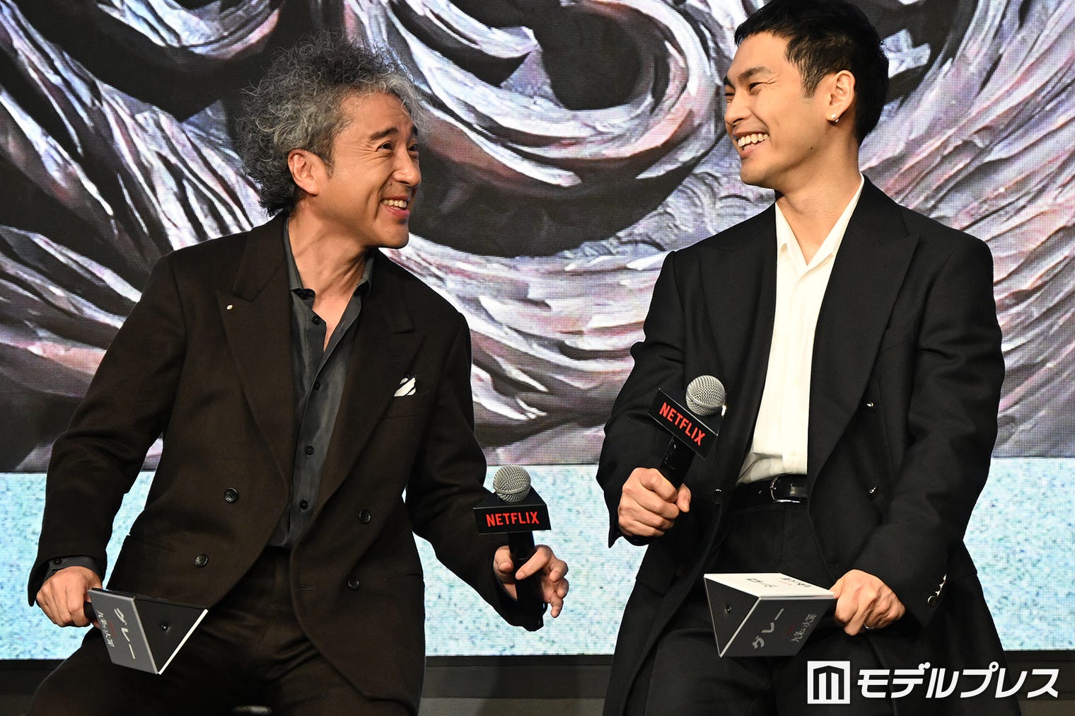 トークセッションが終わってしまい笑い合うムロツヨシ、柳楽優弥(C)モデルプレス