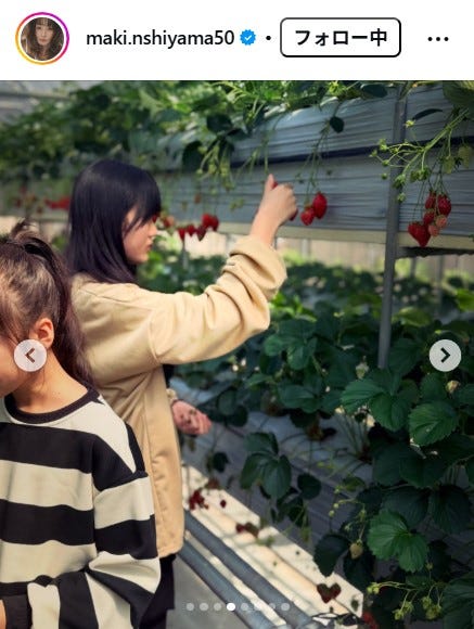 モデルの西山茉希が3月22日、自身のInstagramを更新。9歳と12歳の娘たちといちご狩りをする...