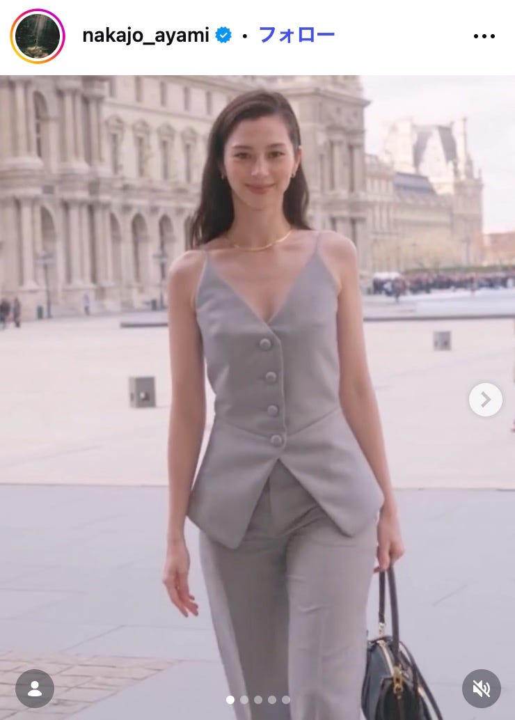 中条あやみ、パリでの洗練されたキャミコーデ披露「美しすぎる」「憧れのスタイル」と反響