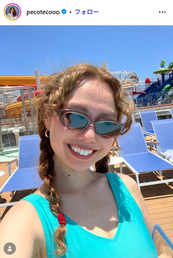 peco、水着姿でディズニークルーズ船のプール満喫「髪型も色合いも全てがおしゃれ」の声