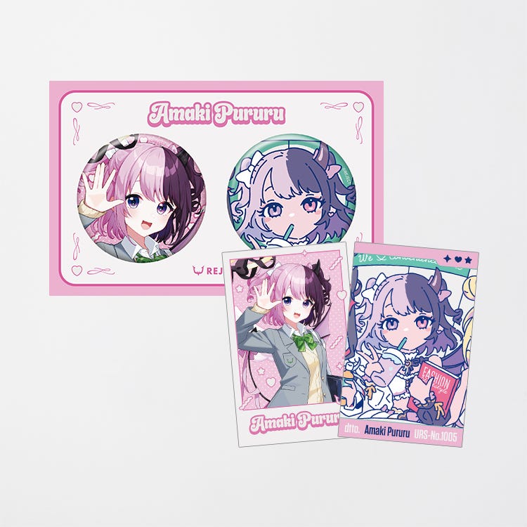 天鬼ぷるる X ファミリーマート チェキ風カード&缶バッジセット(税込2,300円)(提供写真)
