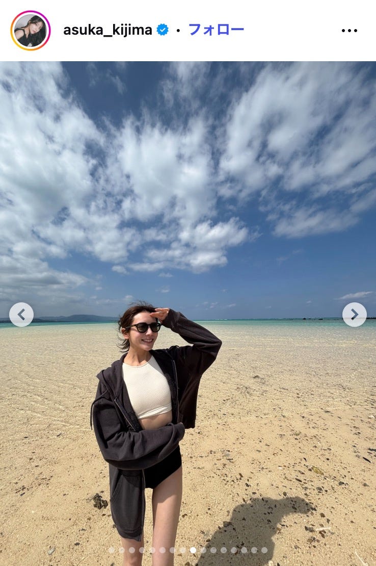 貴島明日香、沖縄での水着ショット公開「脚長すぎてびっくり」「夏が似合う」の声