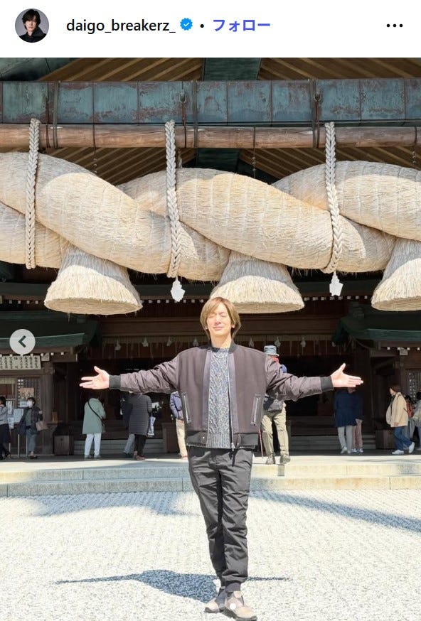 ロックバンド・BREAKERZのボーカルでタレントのDAIGOが3月24日、自身のInstagram...