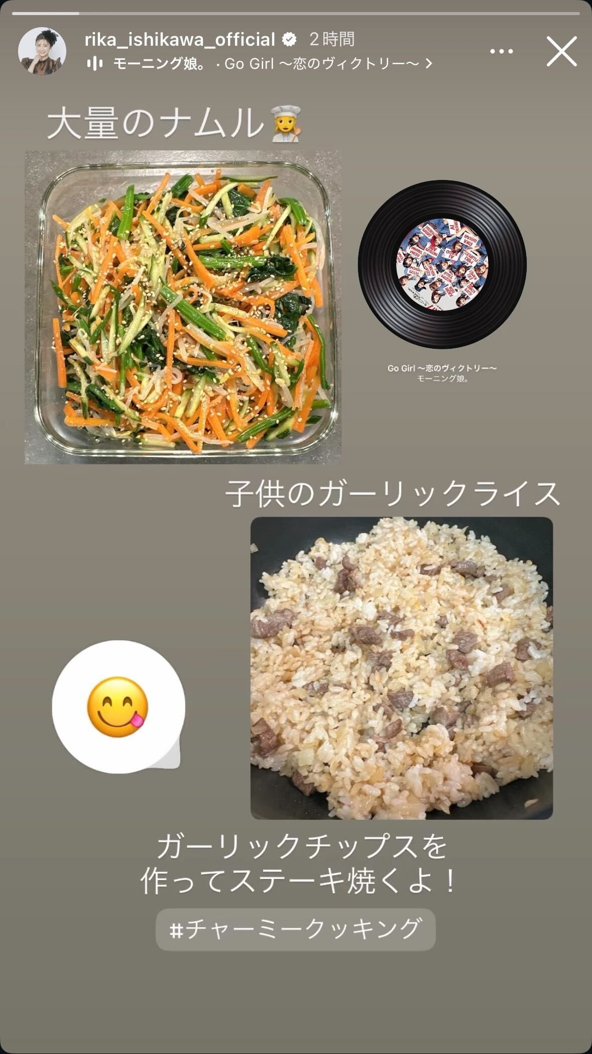 元モーニング娘。でタレントの石川梨華が3月25日、自身のInstagramストーリーズを更新。ナムル...