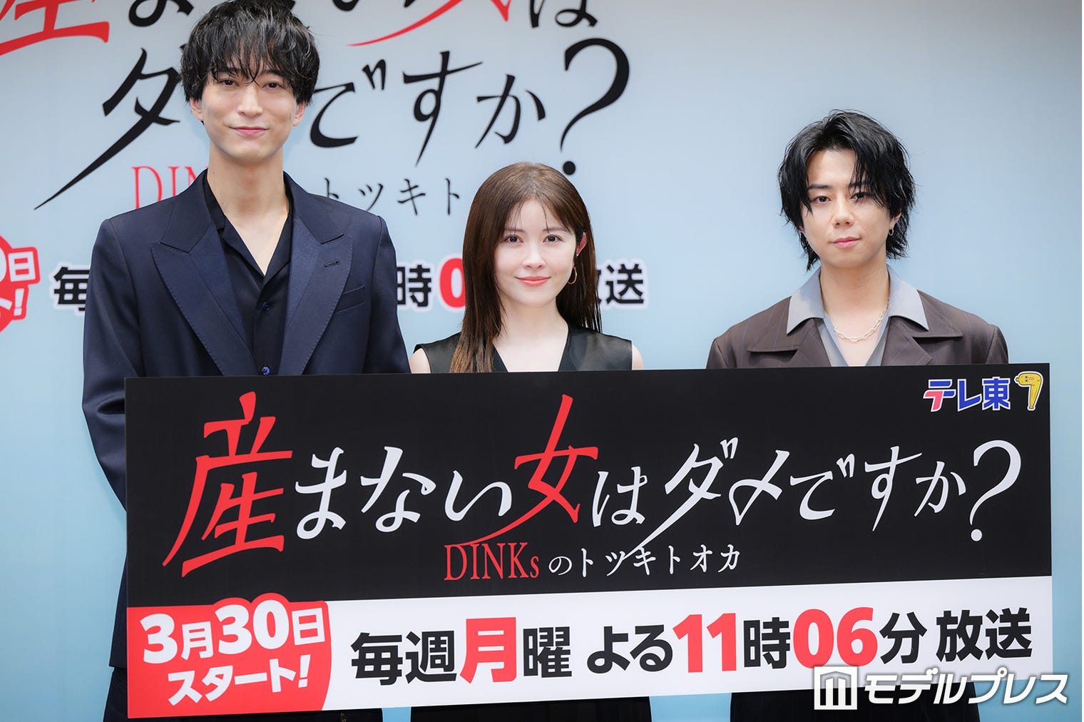 女優の宮澤エマ、俳優の浅香航大、北山宏光が26日、都内で開催されたドラマプレミア 23「産まない女は...