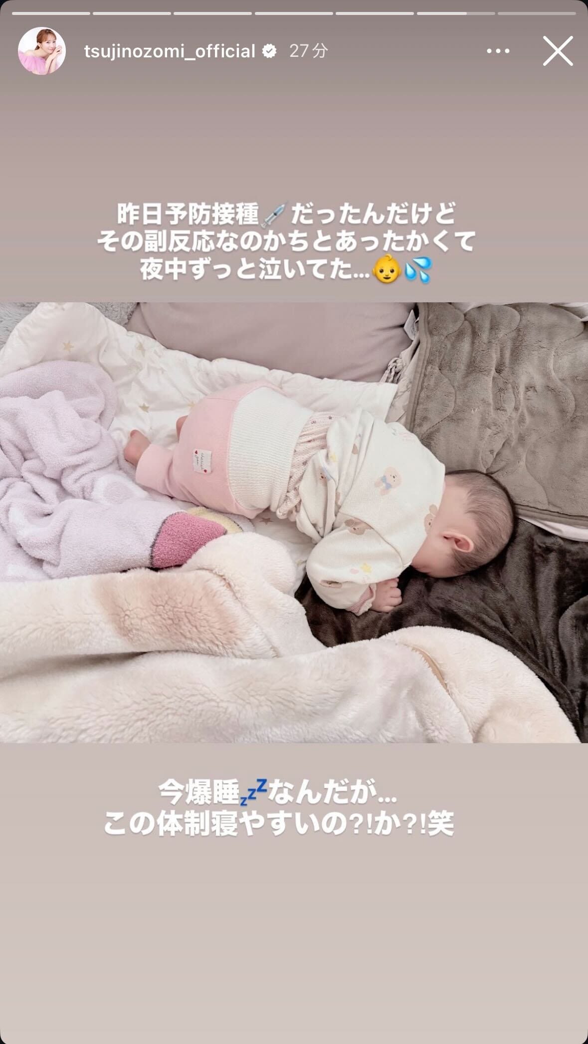 タレントの辻希美が3月28日、自身のInstagramストーリーズを更新。熟睡している第5子・夢空(...