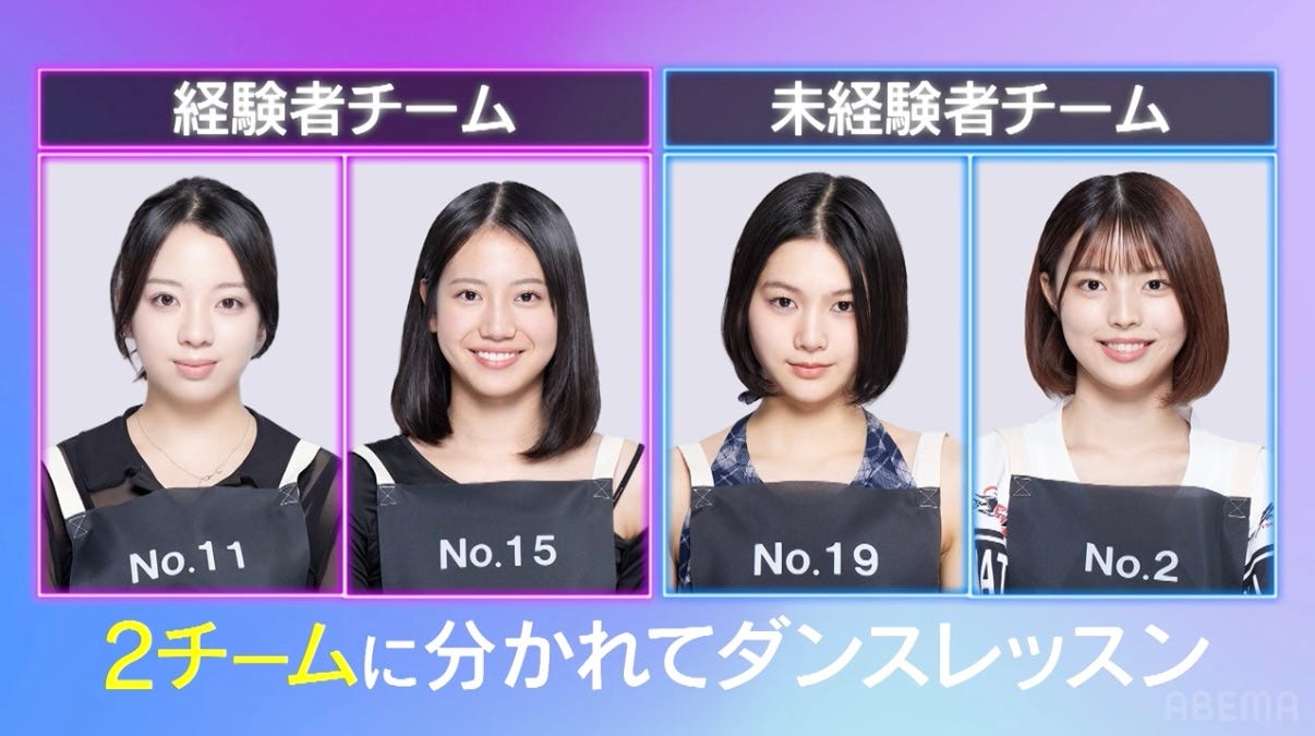 Ayana(桑原彩菜)、Hiori (津波古妃織)、Aoi(大谷碧空)、Sakura(飛咲来)(C)AbemaTV,Inc.