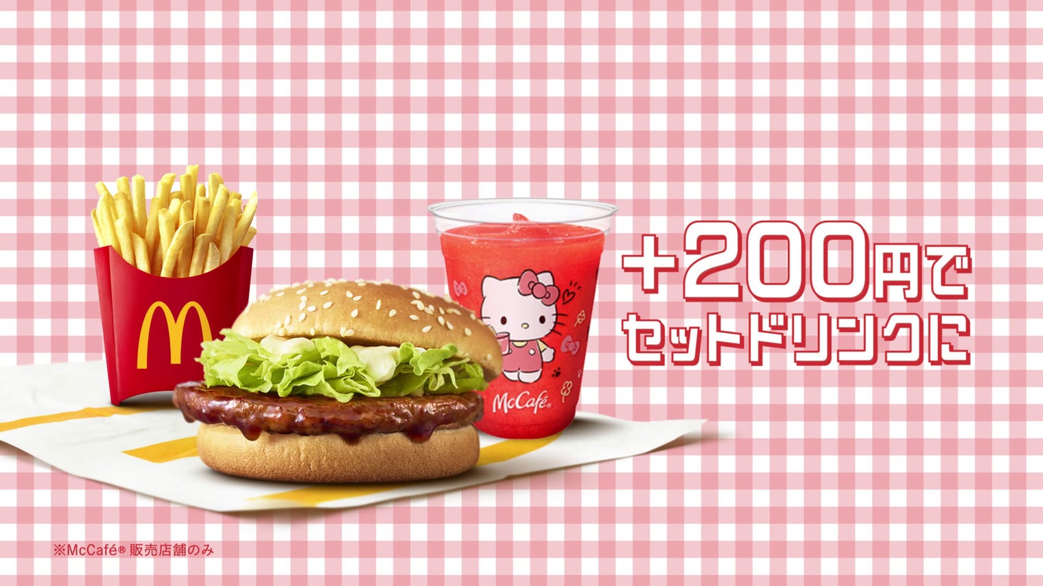 あの、ハローキティ&ポムポムプリンとCM初共演 マックカフェ新ドリンク手に可愛さ全開
