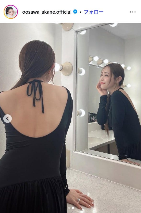 タレントの大沢あかねが4月1日、自身のInstagramを更新。大きく背中が開いたワンピース姿を公開...